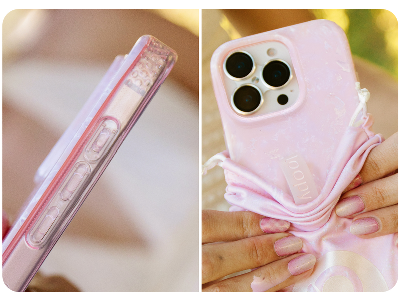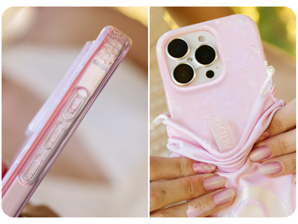 *Much like a natural gemstone, every Blush Moonstone case is one-of-a-kind with its own unique iridescent marbling.