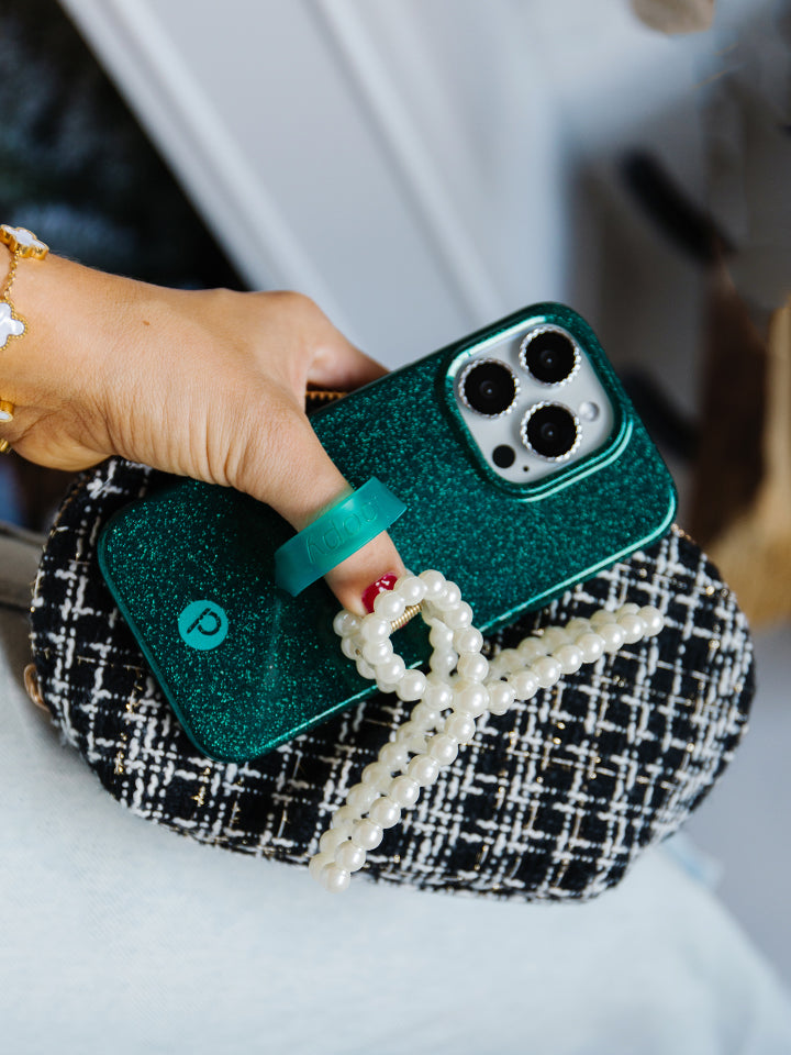A close up of an Emerald Sparkle Loopy Case.|| feature-media