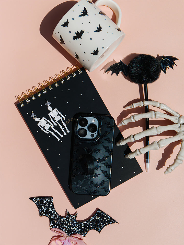 Our Frickin' Bats case has a hybrid matte and gloss finish with sparkle effects and comes with a Black Super Loop and matching microfiber bag.